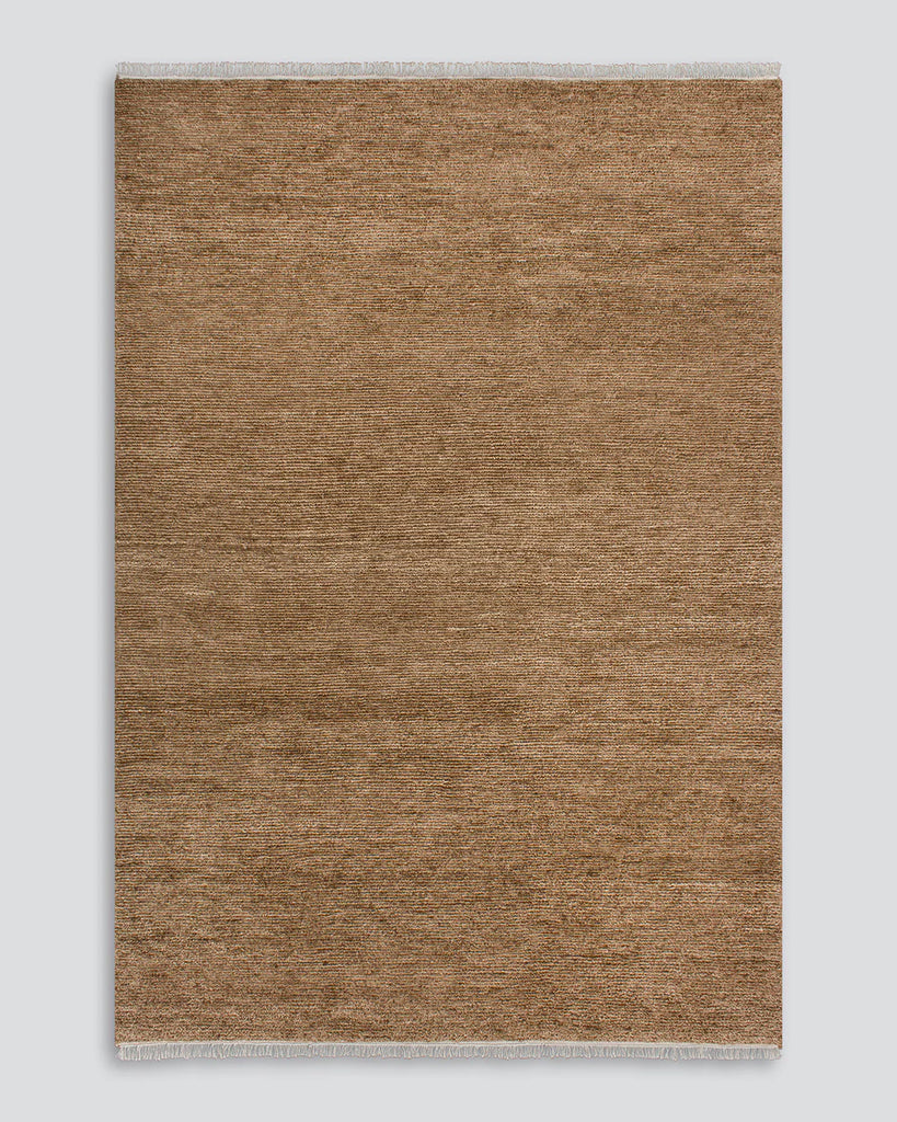 A tactile foundation for considered living, the Tanami rug features a hand-knotted ribbed texture in an earthy brown tone. Woven from 100% New Zealand wool and finished with a soft cotton fringe,its low-profile, pared-back design brings balance, warmth, and organic texture to interiors.